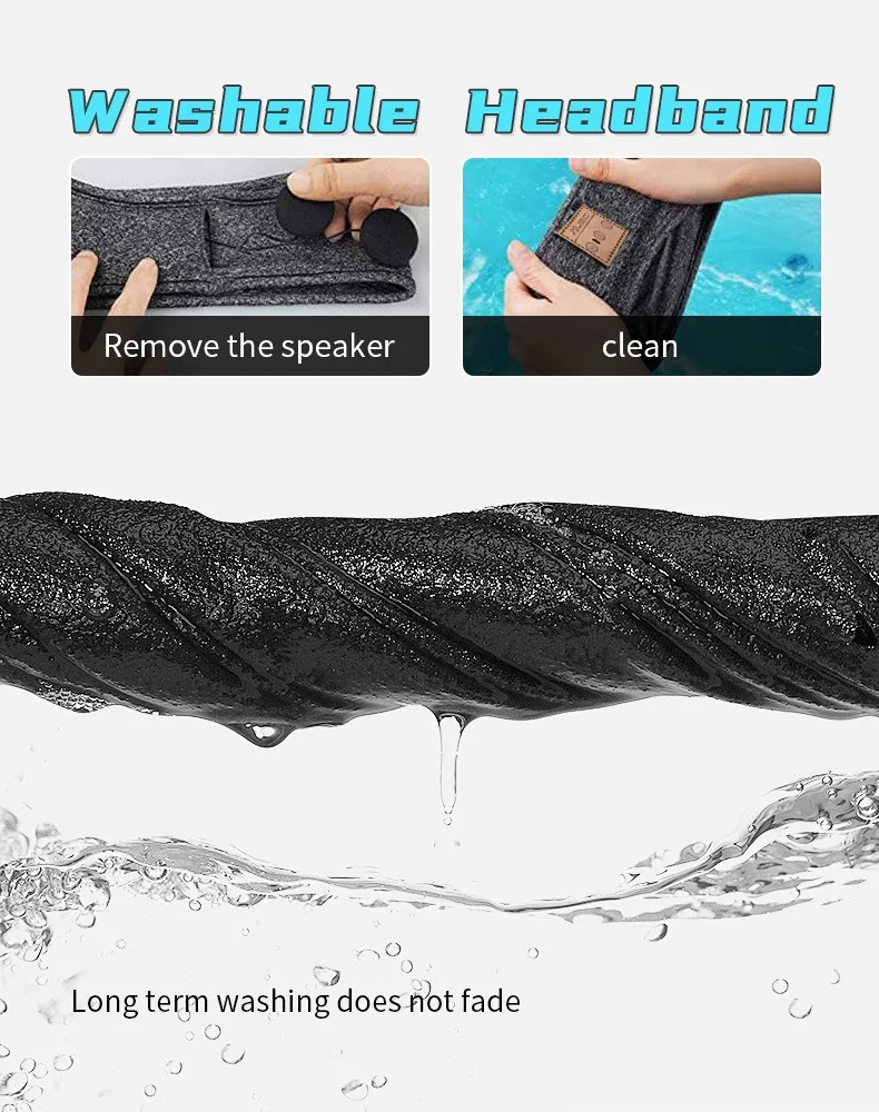 • Faixa de cabeça elástica sem fio:A faixa elástica sem fio proporciona um ajuste confortável para uso o dia todo, tornando-a perfeita para praticar esportes ou dormir.